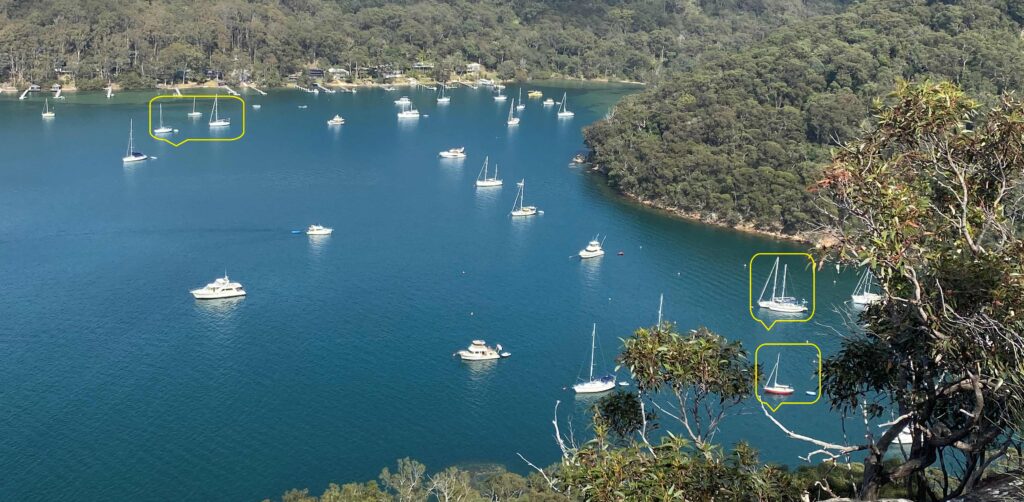 Kai Rani, Viking III, Flemingo, Rara and Sanctum made it to Refuge Bay and enjoyed sundowners together while Eternity and Gana stayed the night at the Basin. Dallas and Selina on Eternity stayed back and kept a watchful eye on Gana to make sure David made it to Pittwater safely. He did a great job single handed sailing.