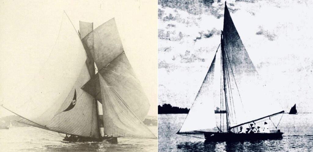 The Australian challenger was Irex, the former Champion 22-Footer Foy purchased in 1898 and sent to England. Built by Joe Donelly* in 1887, Irex had been Intercolonial Champion in both 1894 and 1897
