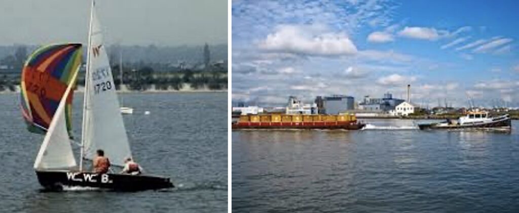 We were taught how to capsize and right the boats in the murky w ater, which wasn't as clean as it is now (when raw sewage isn’t being pumped into it by Thames Water), and Weils disease was not uncommon. Once that was mastered the sailing comprised figuring out how to tack and gybe out of the way of the rubbish barges and party boats whilst in a 6 knot tide with a fickle wind. The rubbish barges were particularly scary. There would be one tug boat towing three huge barges full of junk. Needless to say, they had almost zero manoeuvrability and couldn't avoid us dinghy sailors.