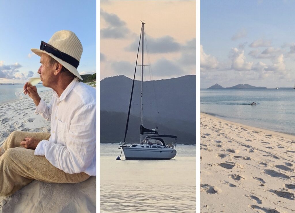 Next day, after a quick morning stroll on land and a few swim strokes along the golden beach, we upped anchor and steered towards Hook Passage. We also contacted Queensland Yacht Charters to let them know the only toilet on board was again out of order. They said they’d get in touch with us a bit later about it, and when they did, we were on the eastern side of Whitsunday Island well on our way towards Whitehaven Beach. We were told to immediately return to base to have the toilet that they fixed the day before, fixed.