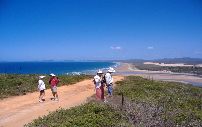 A LARC operates out of 1770 taking tourists along the beach to see the Lighthouse at Bustard Head. It motors passed you when you are anchored at 1770 and is interesting to see it climb the sandbank on its way north. The headland behind 1770 is Round Hill, when we were there, it was where two ladies manned the Marine Rescue Base, kilometres from the creek so they couldn’t give us a report on the state of the bar. Captain Cook personally stepped ashore on Australian soil for the first time at 1770. A cairn memorial now marks the spot on what is now called Monument Point.